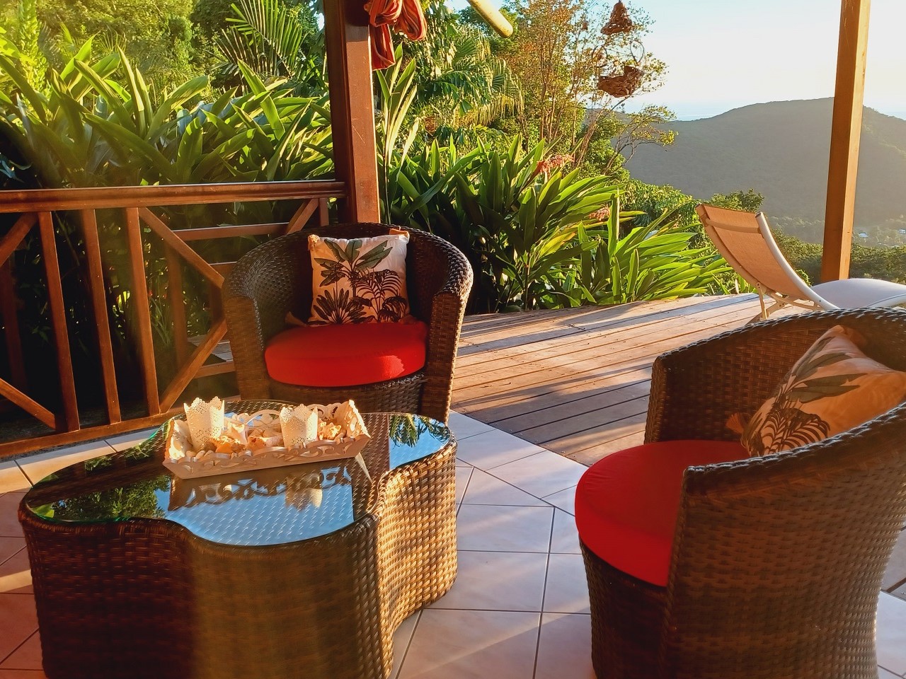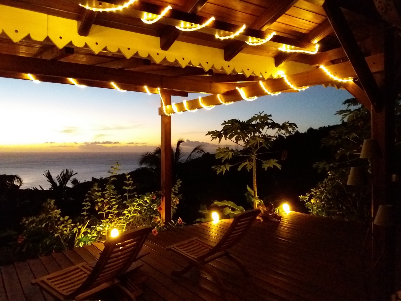 Une envolée de marches vous amène sur la terrasse. La mer, la forêt s'offrent à vous.
