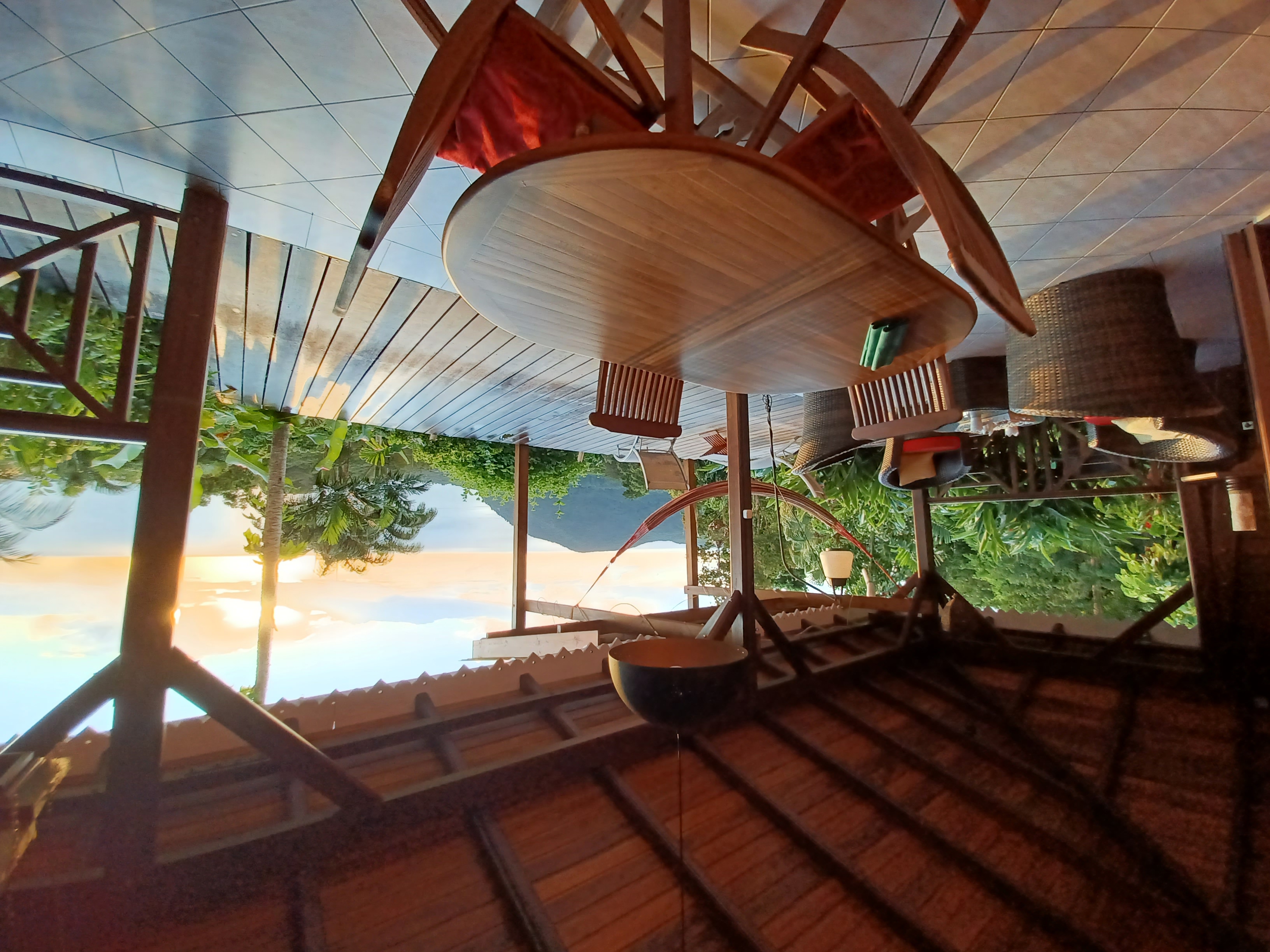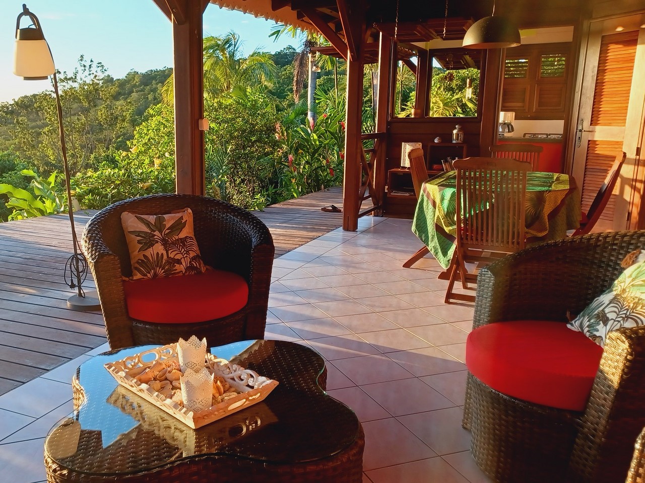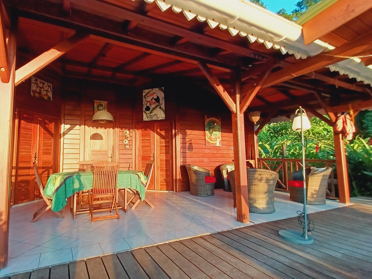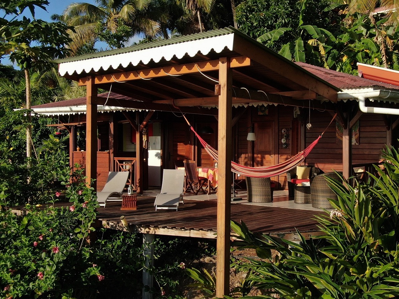 Table à manger, salon, chaises longues , hamac, barbecue
