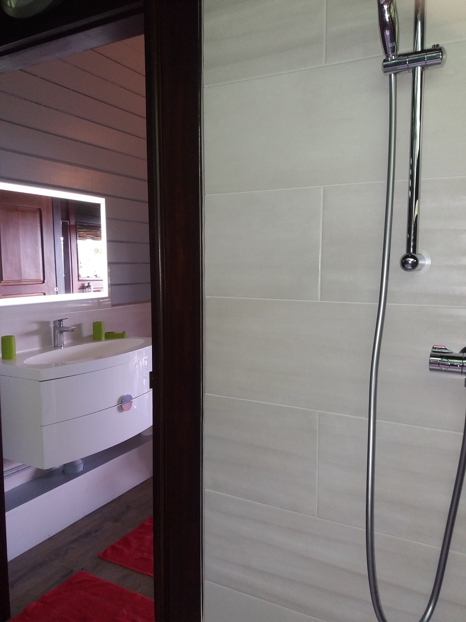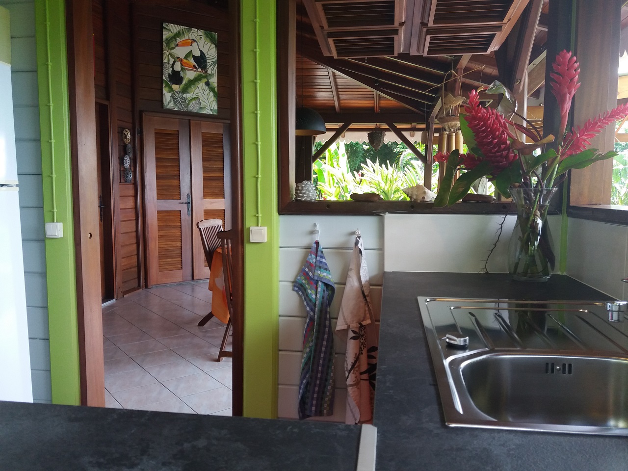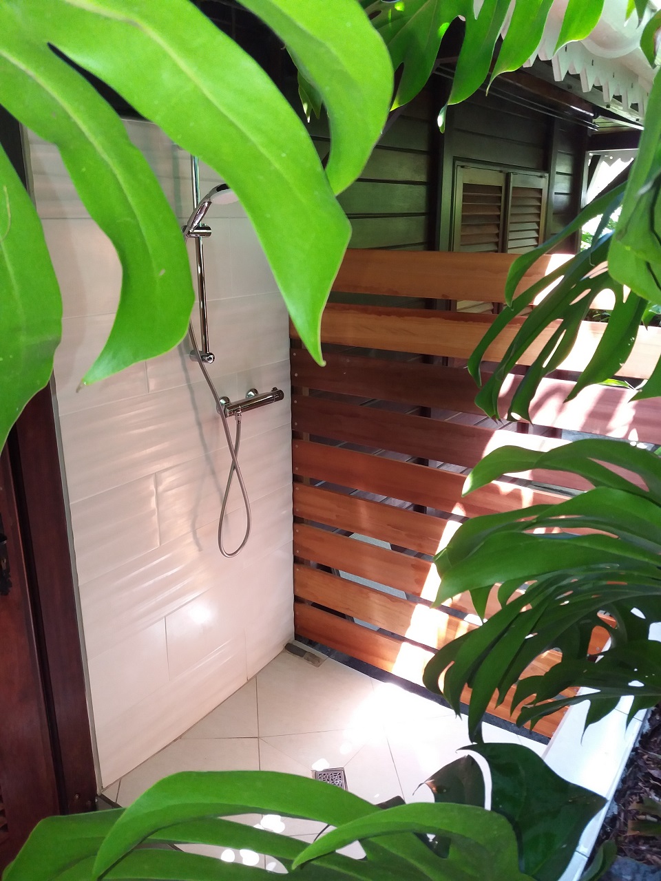 douche extérieure, eau chaude, linges de bain, lave-linge, sèche cheveux - Cuisine